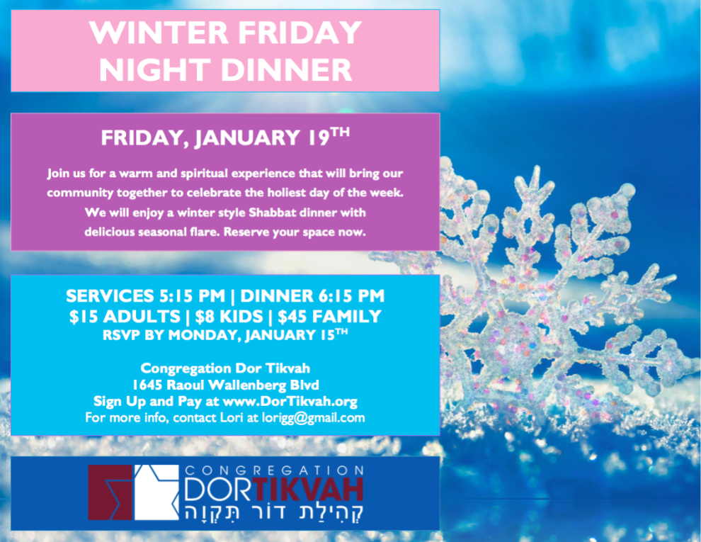 Winter Friday Night Dinner - See Flyer Here - RSVP at www.DorTikvah.org