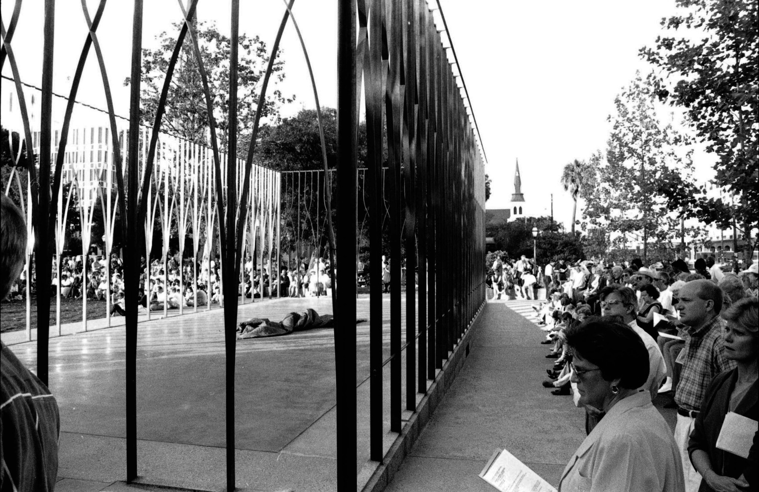 In 1997, builders broke ground along the southern perimeter of Marion Square. Two years later, on June 6, 1999, the memorial was dedicated at a ceremony with 1,500 people in attendance. The irony of its location next to a towering pedestal holding aloft 19th-century statesman John C. Calhoun, a staunch supporter of slavery and white supremacy, has not gone unremarked. Neither has the absence of a monument to the enslaved people whose wealth-generating labor built the city. The year 2020, however, saw some resolution to these ironies: the statue of Calhoun was removed in June by unanimous vote of Charleston’s City Council, and the very next month, the International African American Museum under construction adjacent to Gadsden’s Wharf witnessed a “topping out” ceremony with the placement of the structure’s steel beam.